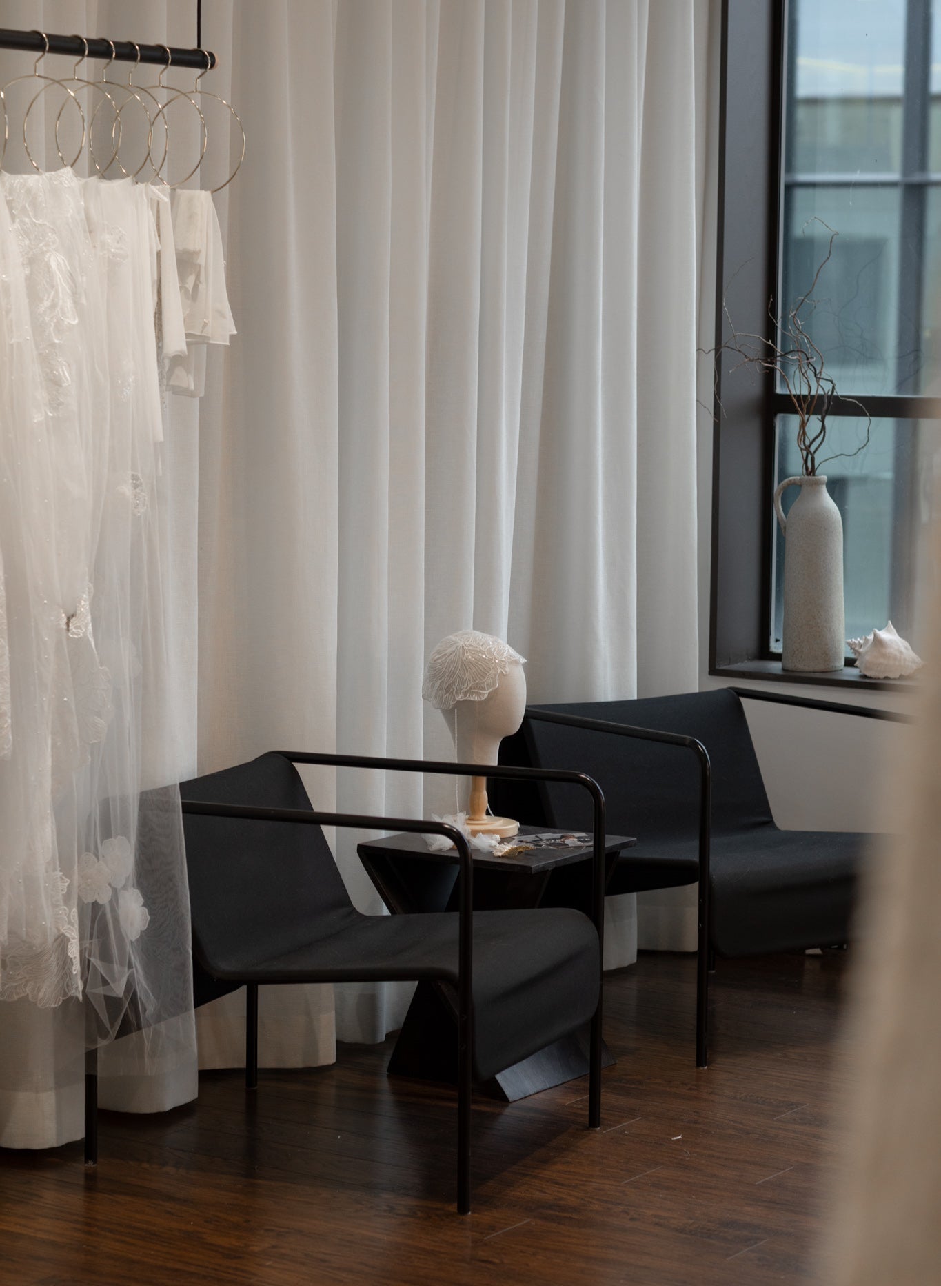 Visit us by appointment to explore modern bridal separates, veils, and accessories—all designed and made locally.