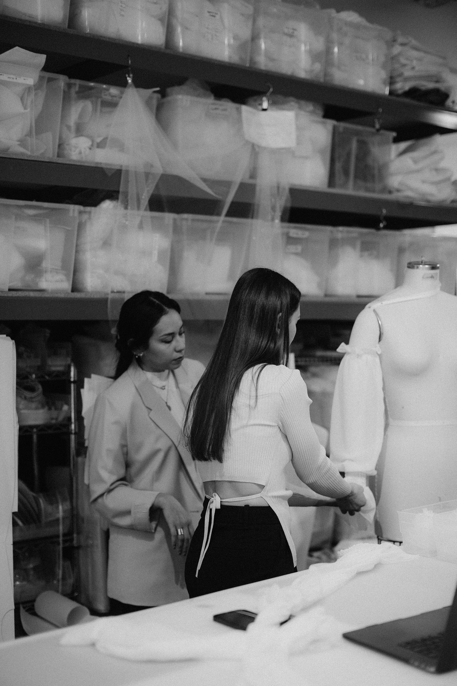 All of TEMPÊTE’s bridalwear is designed and produced locally by our in-house team of skilled artisans. Our Vancouver studio is where sketches become silhouettes, where fitting notes turn into pattern updates, and where every stitch serves a purpose.